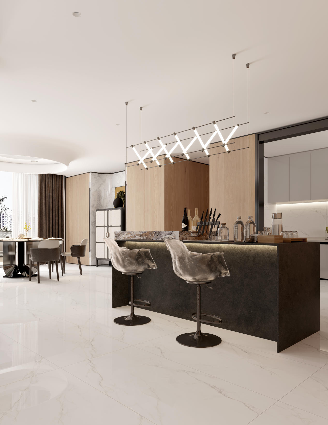 白而不膩的底色上,肆意生長的灰色紋理,輕盈鎏金從容隨性,仿佛晨光微曦時破曉的天宇滿載著生命的力量,在光線輾轉處撒歡。