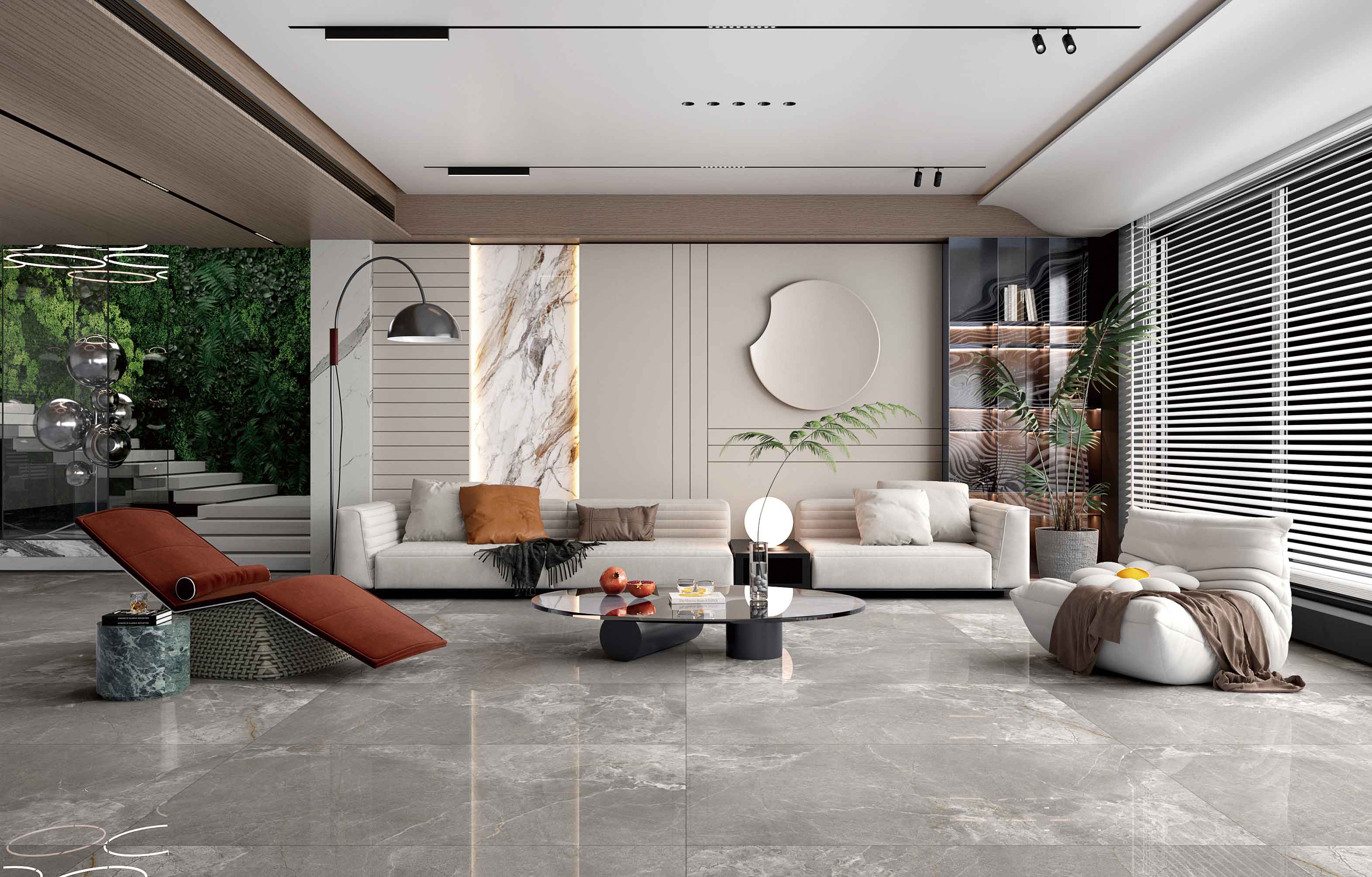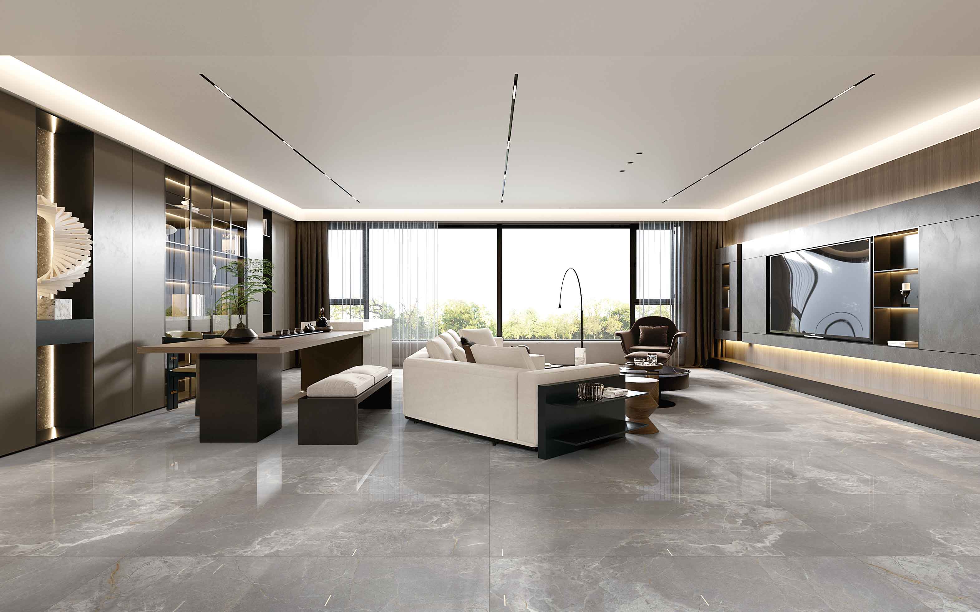 濃郁的灰色色澤,細膩的自然游動,輕松營造出一股浪漫、寫意的空間氛圍。大空間鋪貼,整體感覺更連貫,更氣派。